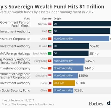 Este gráfico mostra os maiores fundos soberanos de investimento por ativos sob gestão em 2017.-As of September 19, 2017