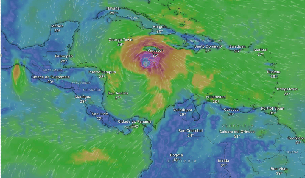 Essa intensificação aconteceu em águas muito quentes do Caribe, que fornecem energia para a formação de ciclones. O sistema se moveu de forma relativamente lenta, o que permitiu que acumulasse ainda mais força antes de atingir áreas densamente povoadas. InfoMoney